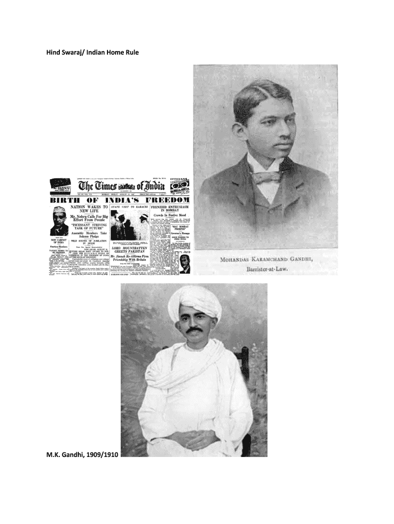 Hind Sarah/ Indian Home Rule. K. Gandhi, 1909/19102 OCTOBER 186930 January 1948 Born in Coriander, Gujarat. Studied law in London. Worked in South Africa as lawyer, representing Indians there who