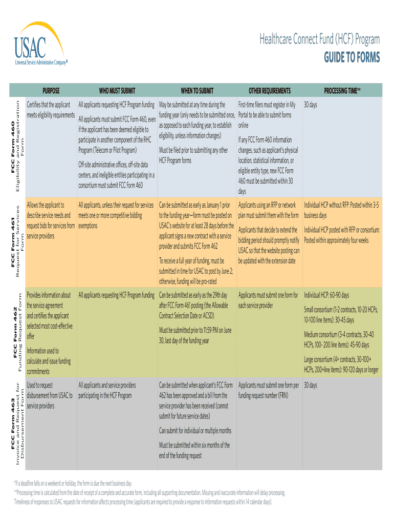 Healthcare Connect Fund (CF) Program GUIDE TO FORMS WHO MUST SUBMIT Certifies that the applicant an applicant requesting CF Program funding meets eligibility requirements All applicants must submit