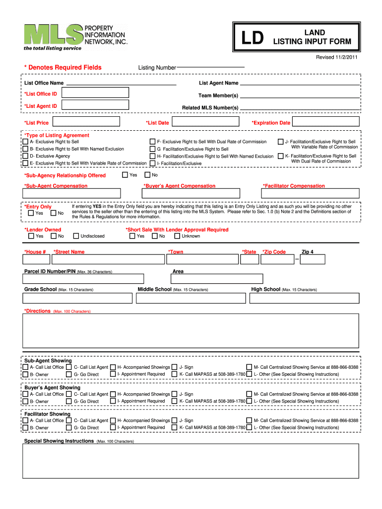 The LD Land Listing Input Form is a real estate document used by agents and sellers in Massachusetts to input and manage property listings in the MLS system.