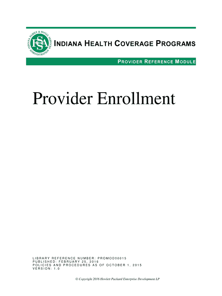 INDIANA HEALTH COVERAGE PROGRAMS PROVIDER REFERENCE MODULE Provider Enrollment LIBRARY REFERENCE NUMBER: PROMOD00015 PUBLISHED: FEBRUARY 25, 2016, POLICIES AND PROCEDURES AS OF OCTOBER 1, 2015, VERSION: