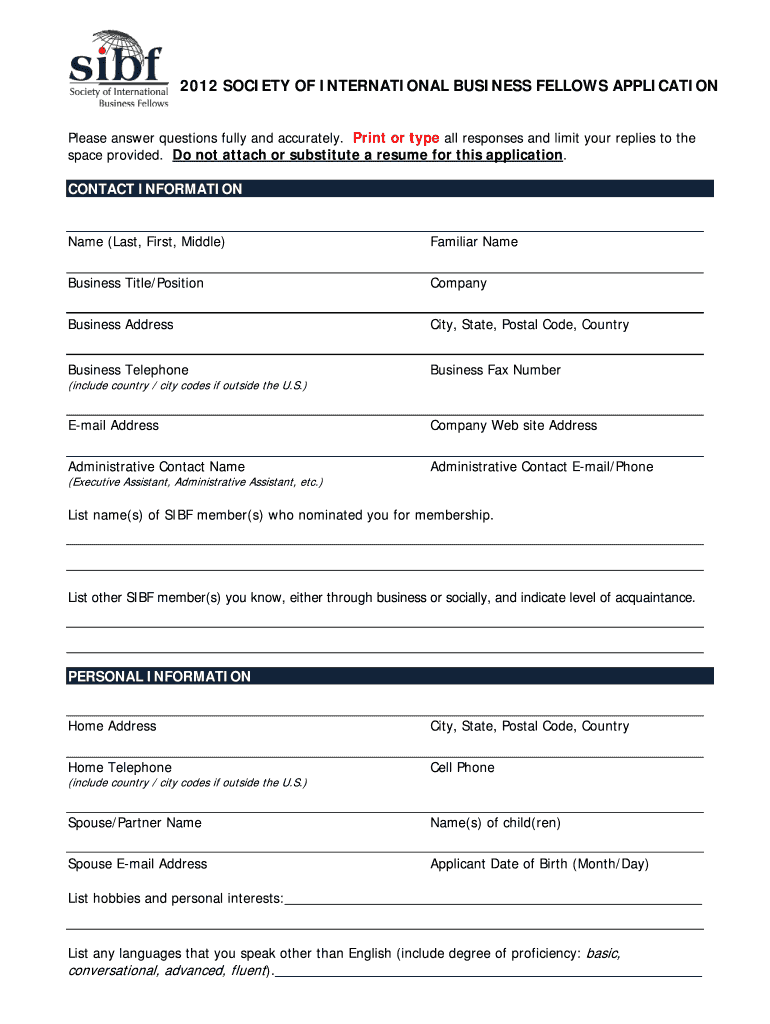 Be sure to thoroughly complete any sections pertaining to the reason you are interested in joining the Society of International.