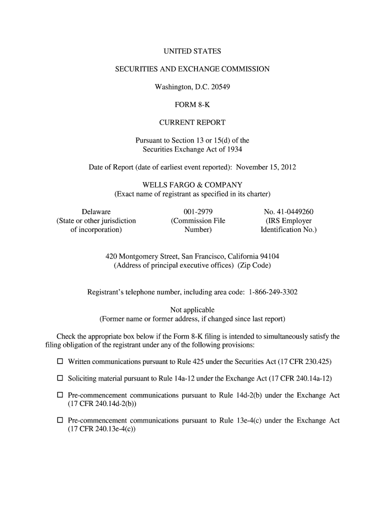 Este Informe Actual se presenta de conformidad con la Sección 13 o 15(d) de la Ley de Valores de 1934 y detalla la emisión de Notas de Mediano Plazo, Serie K de Wells Fargo & Company, así como
