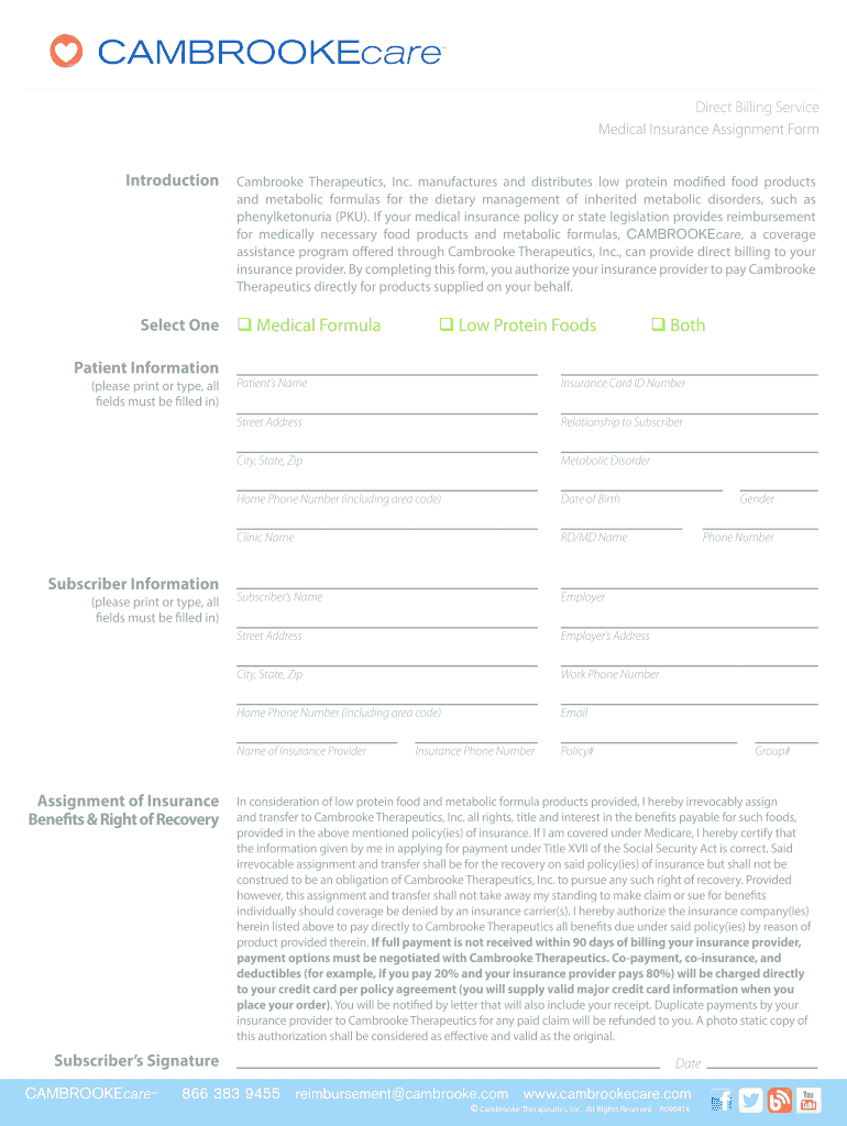 CAMBROOKEcare Direct Billing Service Introduction Cambridge Therapeutics, Inc. manufactures and distributes low protein modified food products and metabolic formulas for the dietary management of