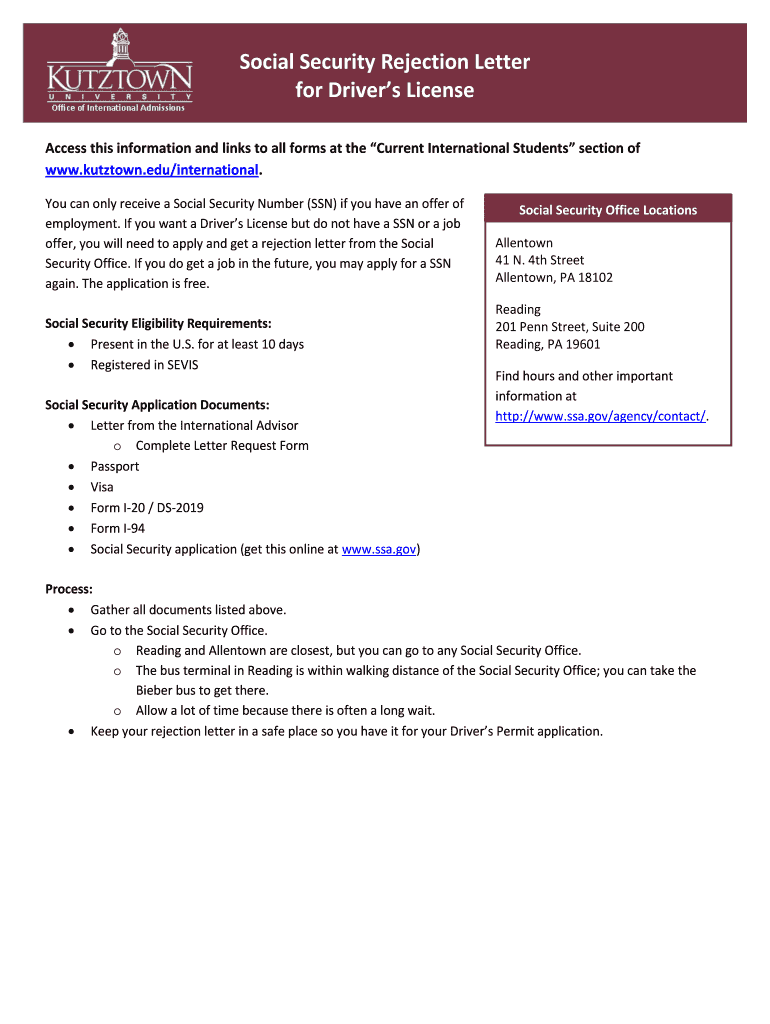 Get the free Social Security Rejection Letter