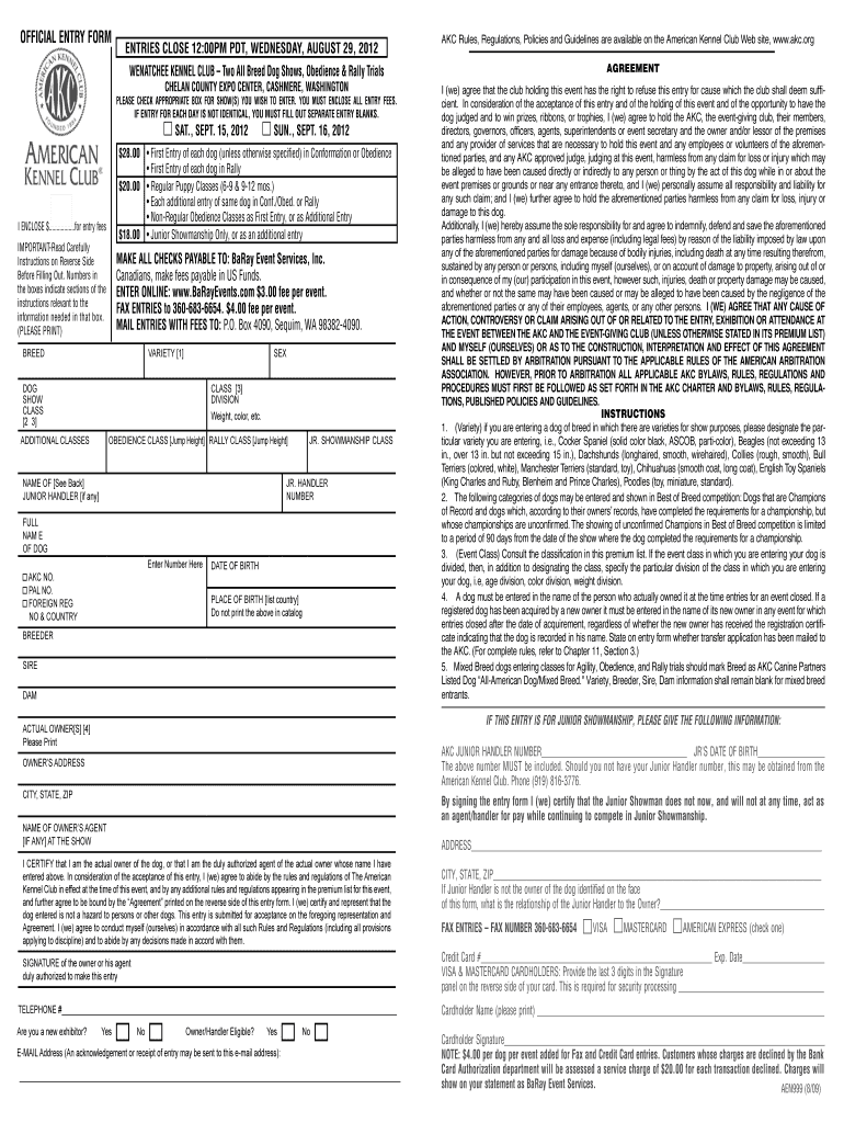 Get the free AKC Dog Show Entry Form