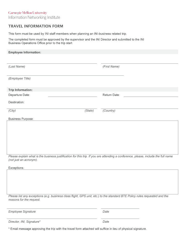 Anyone who is traveling for business or personal reasons may be required to file a travel information formdocx.