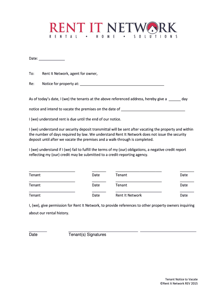 Get the free NOTICE TO VACATE - Rent It Network
