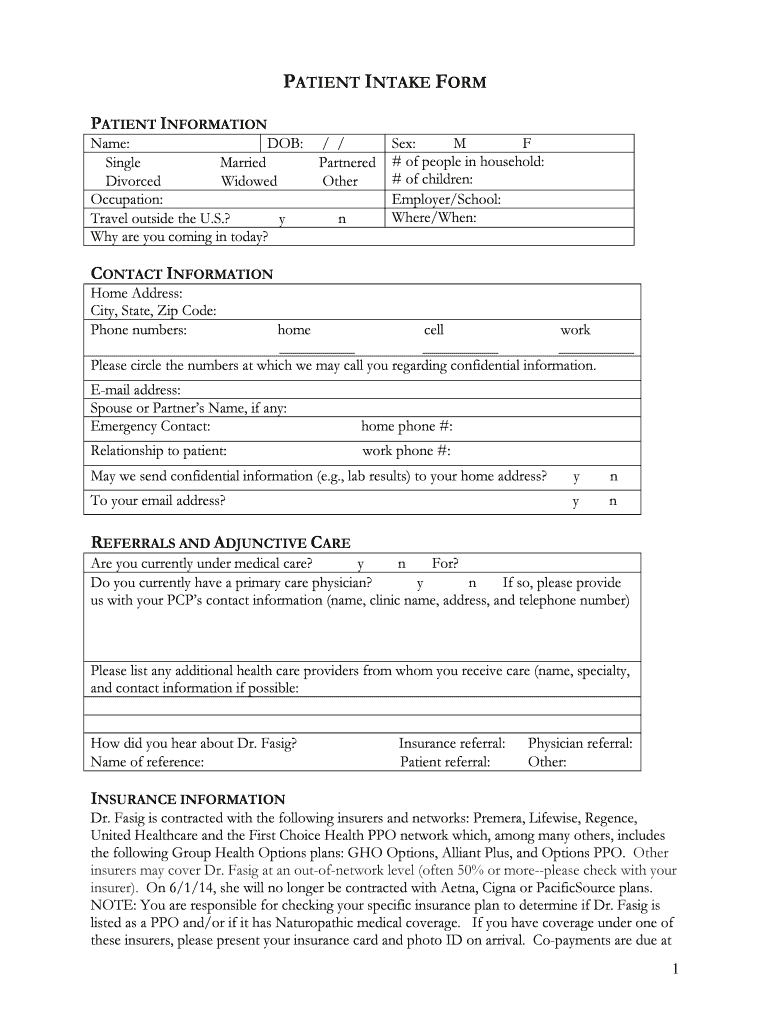 Get the free Patient Intake Form 3-10-2014