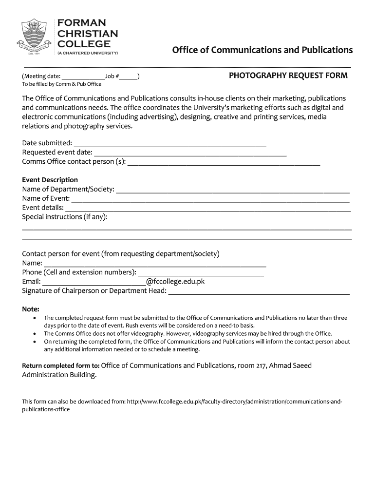 Get the free To be filled by Comm & Pub Office - fccollege edu
