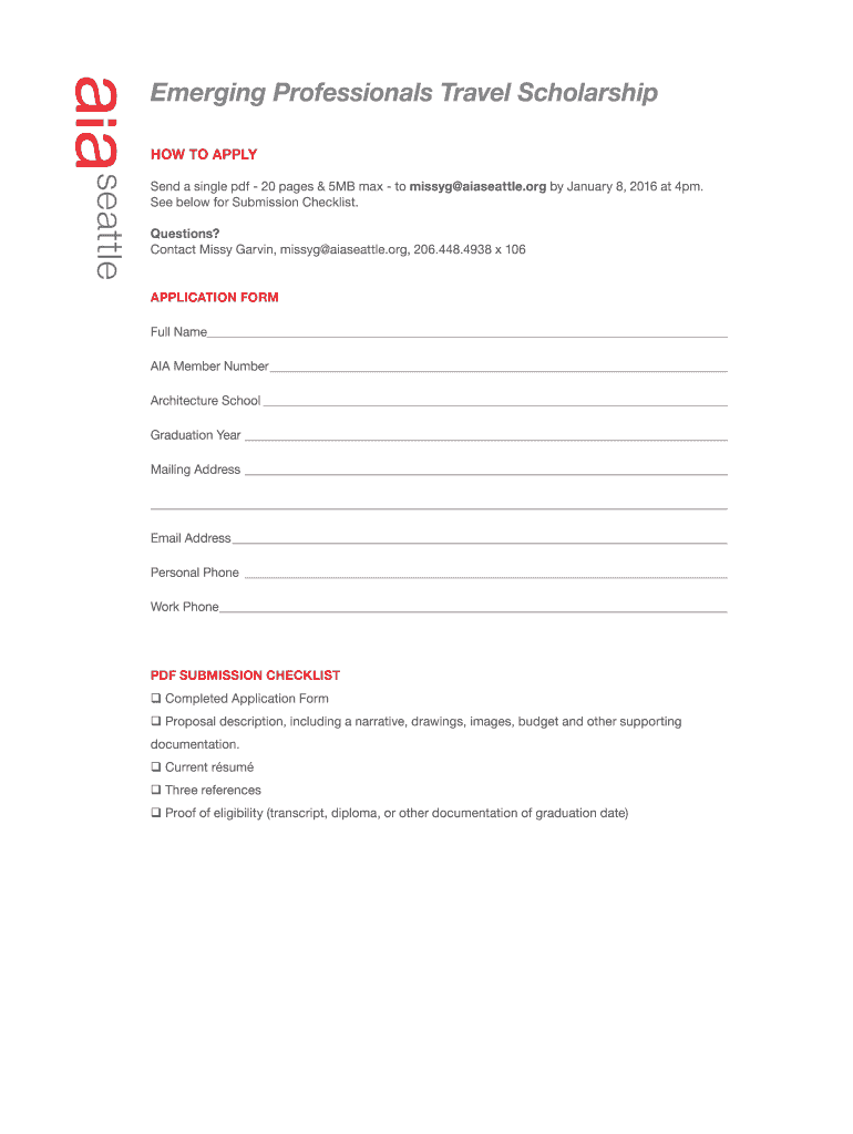 Get the free Emerging Professionals Travel Scholarship - AIA Seattle - aiaseattle