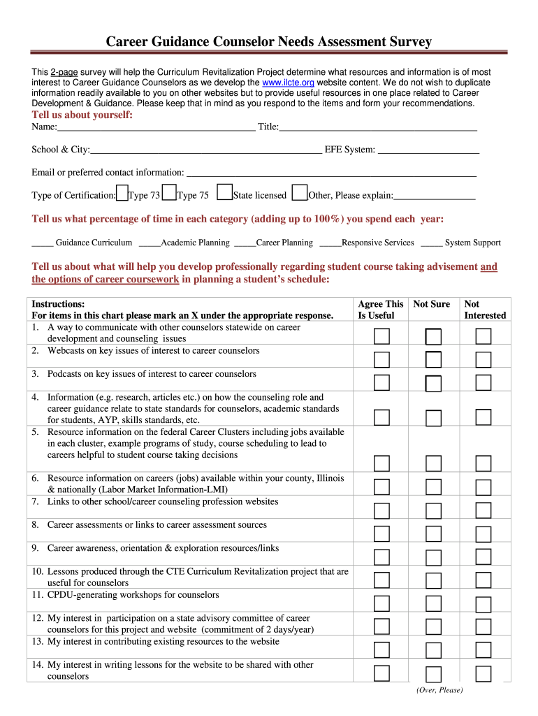 Get the free Career Guidance Counselor Needs Assessment Survey - ilcte