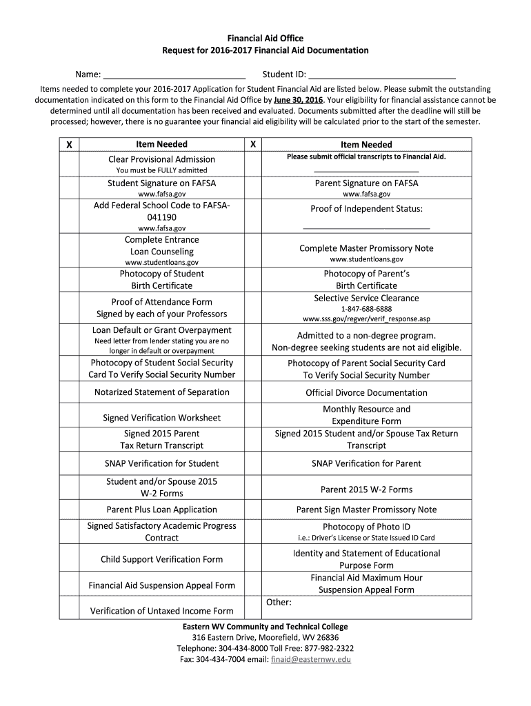 Get the free Financial Aid Office Request for 2016-2017 Financial Aid - easternwv
