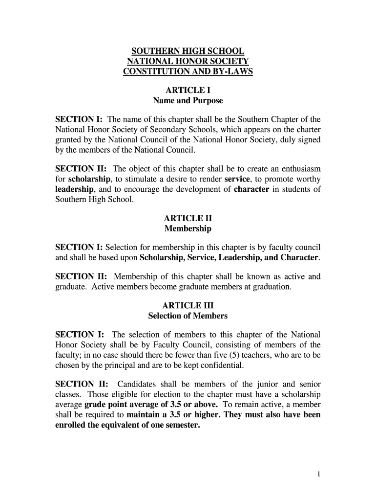 Get the free SOUTHERN HIGH SCHOOL NATIONAL HONOR SOCIETY CONSTITUTION - southernlocalmeigs