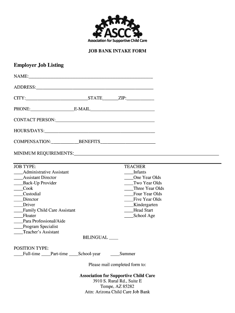 Get the free Arizona Child Care Job Bank - Association for Supportive - asccaz
