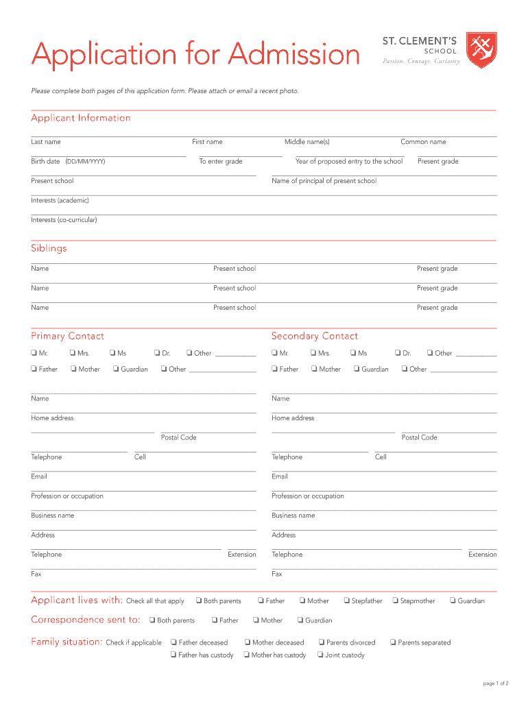 Application for Admission Please complete both pages of this application form. Please attach or email a recent photo. Applicant Information Last name First name Birth date (DD/MM/YYY) Middle name(s)