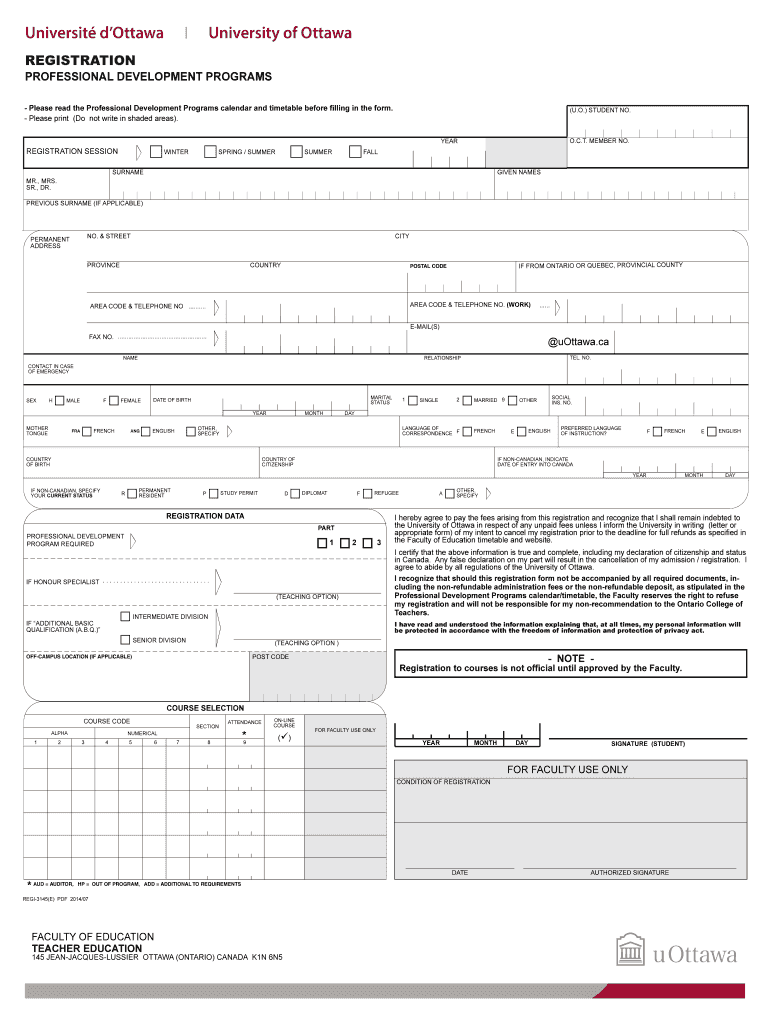 Get the free Registration - Professional Development Programs REGI-3145(e). Registration - Profes...