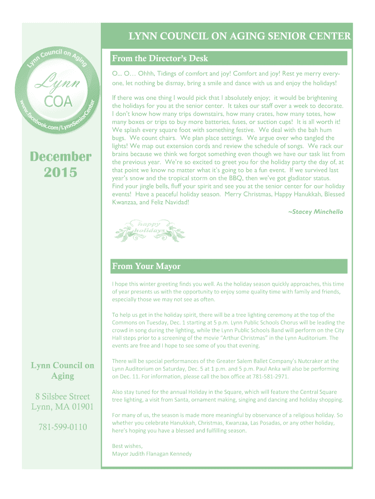 Dec 4, 2015 ... City of Lynn. Meet the Staff: ... DECEMBER 2015. MONDAY. TUESDAY ..... Page 9. Monthly Newsletter http://www.puzzles.ca/wordsearch.html ...