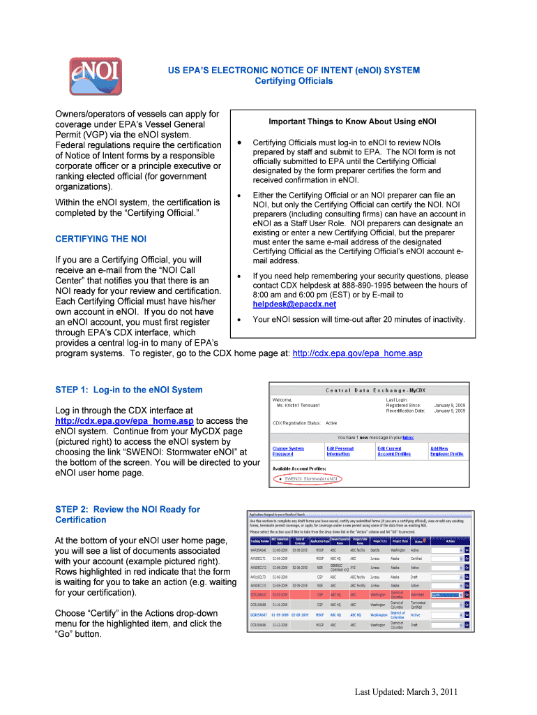 Get the free US EPAS ELECTRONIC NOTICE OF INTENT (eNOI) SYSTEM