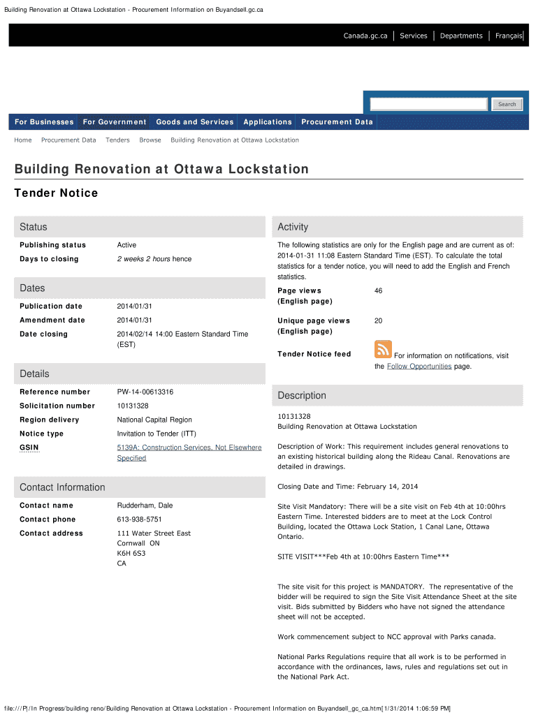 Building Renovation at Ottawa Lock station Procurement Information on Buyandsell.GC.ca Canada.GC.ca Services Departments Francis Buyandsell.GC.ca Public Works and Government Services Canada For Businesses