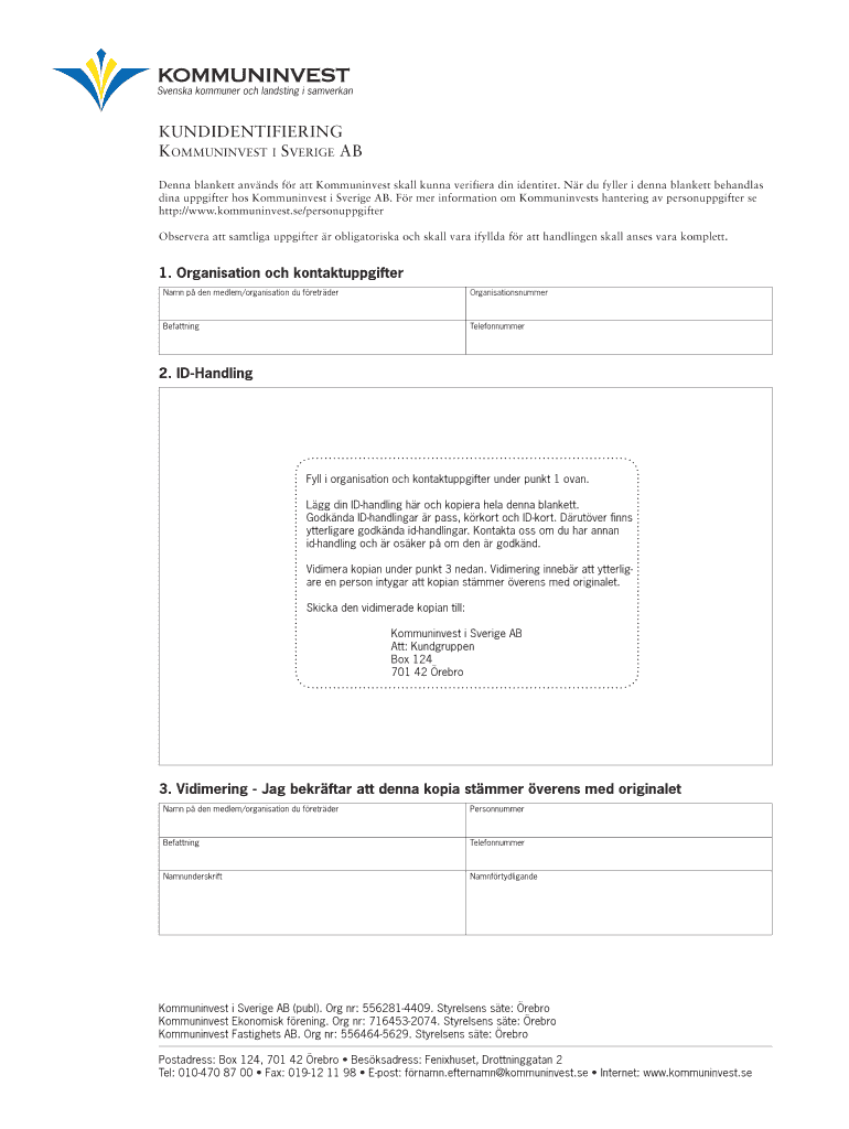 Get the free KUNDIDENTIFIERING K AB - kommuninvestse