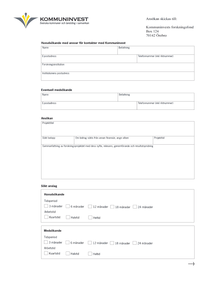 Get the free Anskan skickas till Kommuninvests forskningsfond Box 124 - kommuninvest
