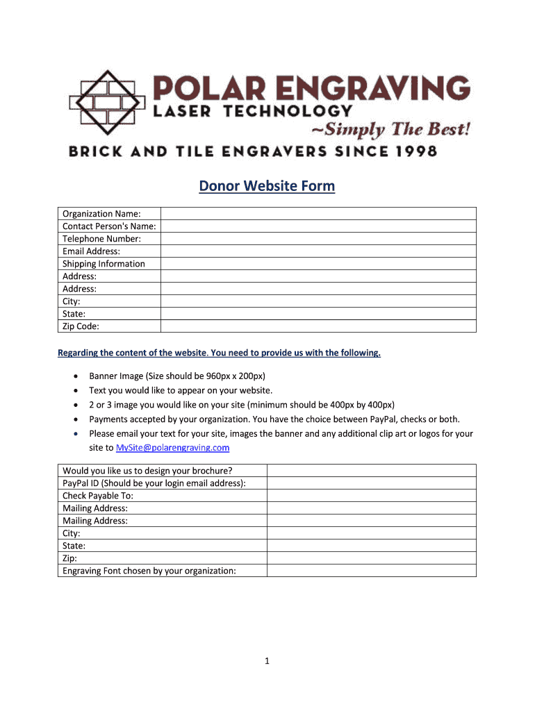 Donor Website Form Organization Name: Contact Person's Name: Telephone Number: Email Address: Shipping Information Address: Address: City: State: Zip Code: Regarding the content of the website. You