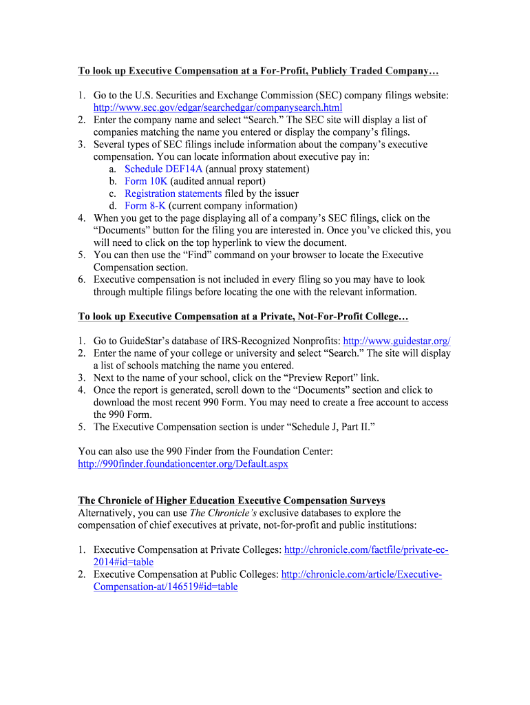 Get the free To look up Executive Compensation at a For-Profit, Publicly Traded Company