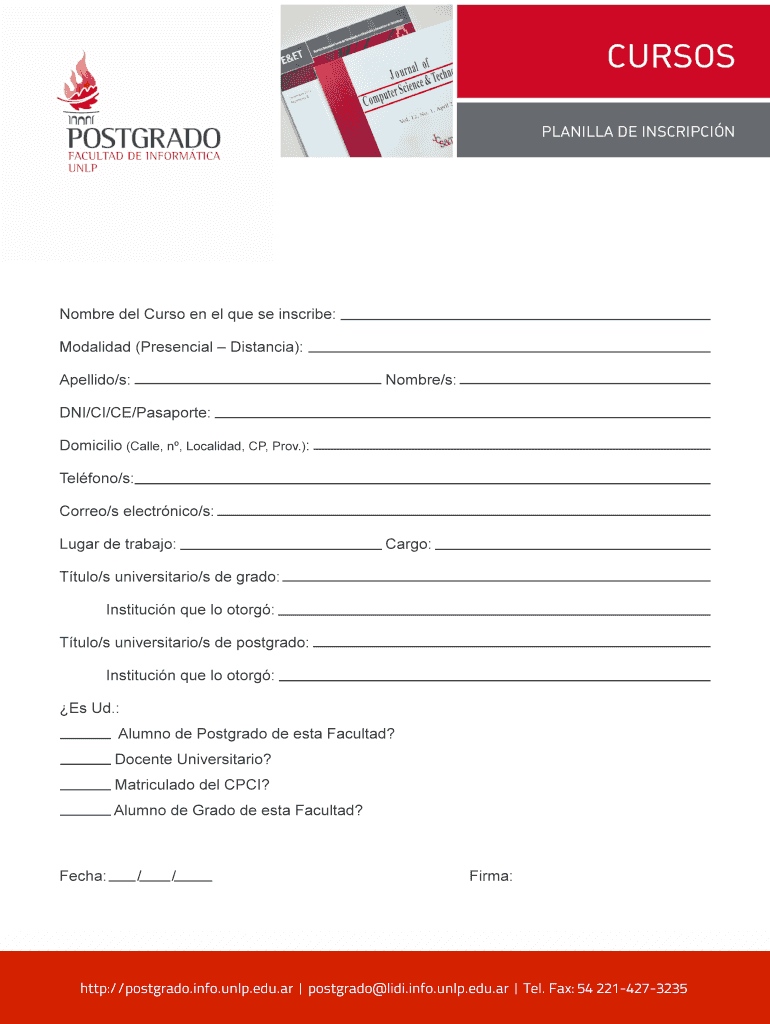 Hombre Del Curse en el Que SE inscribe: Modality (Presence Distance): Adelaide/s: Hombre/s: DNI/CI/CE/Passport: Domicile (Called, n, Localized, CP, Prov.): Teflon/s: Core/s electric/s: Lugar de tribal: