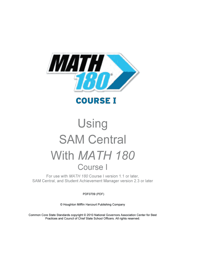 Using SAM Central With MATH 180 Course I For use with MATH 180 Course I version 1.1 or later, SAM Central, and Student Achievement Manager version 2.3 or later PDF0709 (PDF) Houghton Mifflin Harcourt