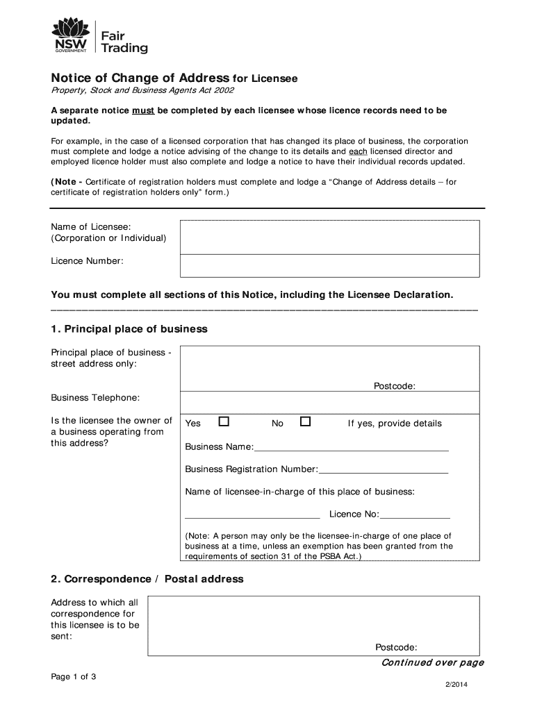 Get the free Notice of Change of Address for Licensee PSBA Act Feb 2014 version