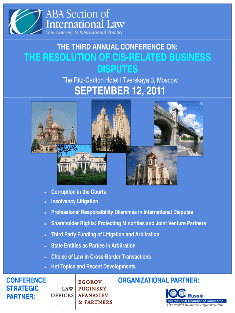 The Third Annual Conference on the Resolution of CIS-Related Business Disputes is a professional gathering focused on discussing strategies, mechanisms, and best practices for resolving business disputes that arise in the Commonwealth of Independent States (CIS).