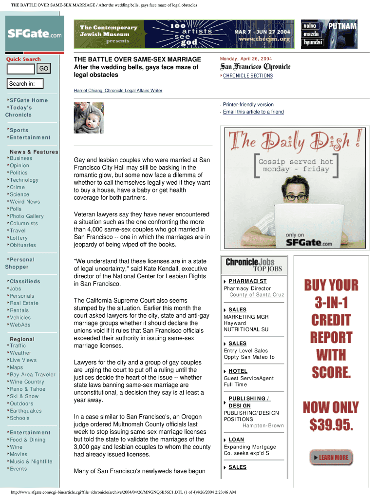 Get the free THE BATTLE OVER SAME-SEX MARRIAGE After the wedding bells gays face maze of legal ob...