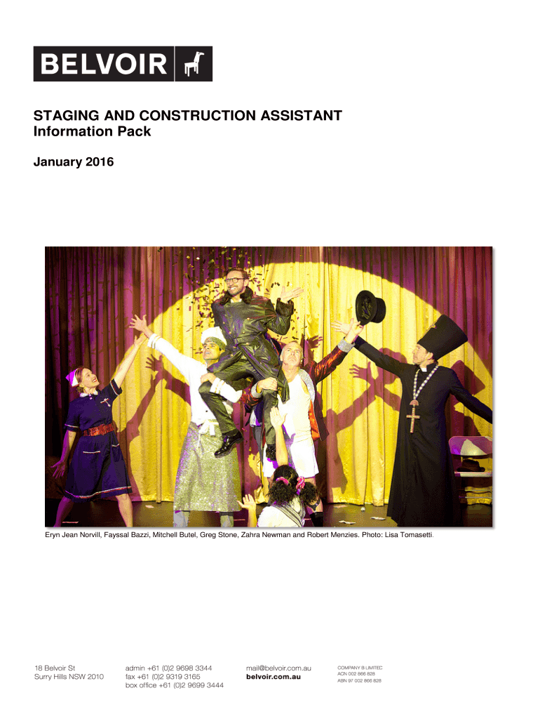 STAGING AND CONSTRUCTION ASSISTANT Information Pack January 2016Eryn Jean Orville, Vassal Jazz, Mitchell Betel, Greg Stone, Zara Newman and Robert Menzies. Photo: Lisa Rossetti. Overview Job Profile:The