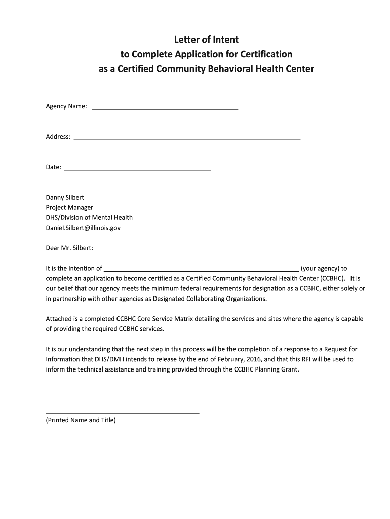 Get the free Notice of Letter of Intent Provider bParticipationb in the bCertifiedb bb - dhs stat...
