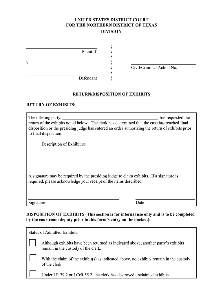 Get the free RETURNDISPOSITION OF EXHIBITS - txnd uscourts