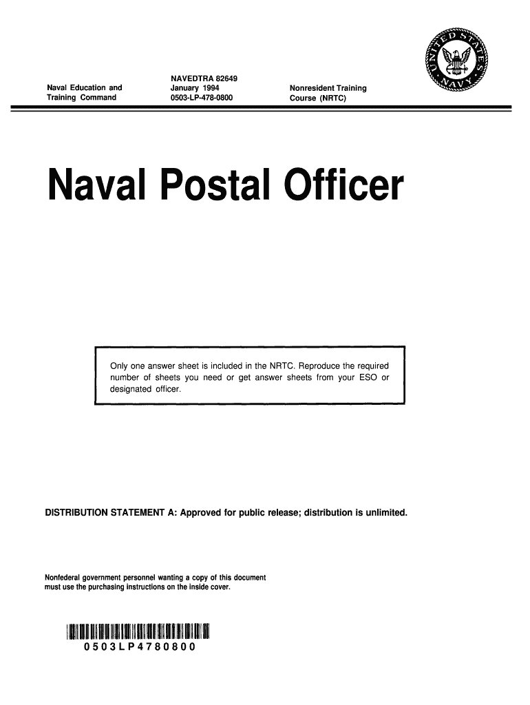 Naval Education and Training Command AVESTA 82649 January 1994 0503LP4780800 Nonresident Training Course (NRC) Naval Postal Officer Only one answer sheet is included in the NRC. Reproduce the required