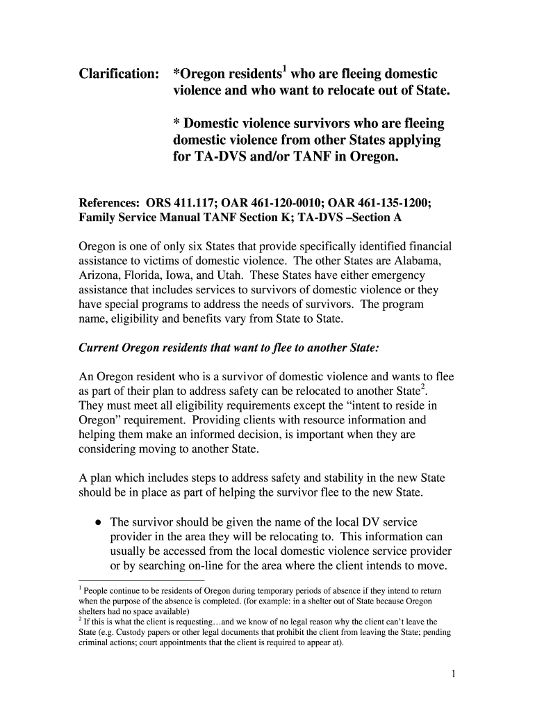 Get the free Clarification: *Oregon residents1 who are fleeing domestic