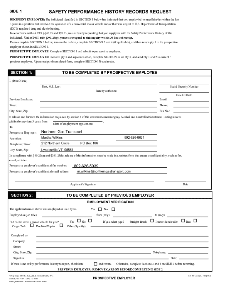Providing users with a sample of a completed Safety Performance History Records Request can offer valuable guidance. This example should highlight key sections to aid in proper completion: