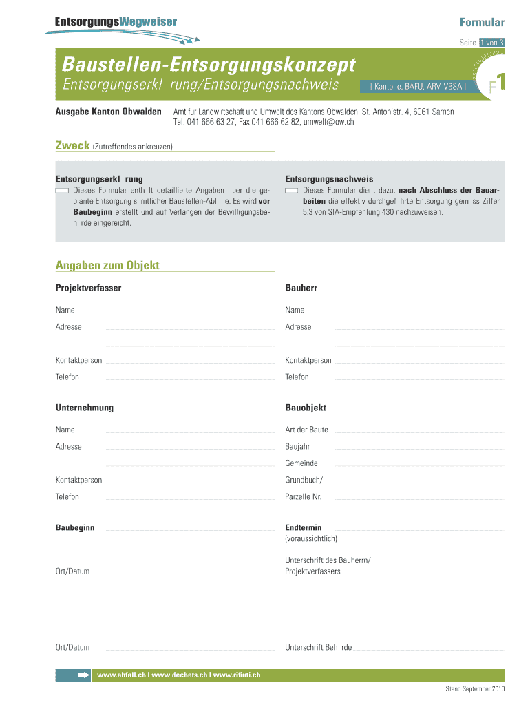EntsorgungsWegweiser Formula Sate 1 on 3 BaustellenEntsorgungskonzept Entsorgungserklrung/Entsorgungsnachweis Mugabe Canton Walden Keystone, BAKU, ARV, VISA F1 Amt for Landwirtschaft UND Umwelt DES