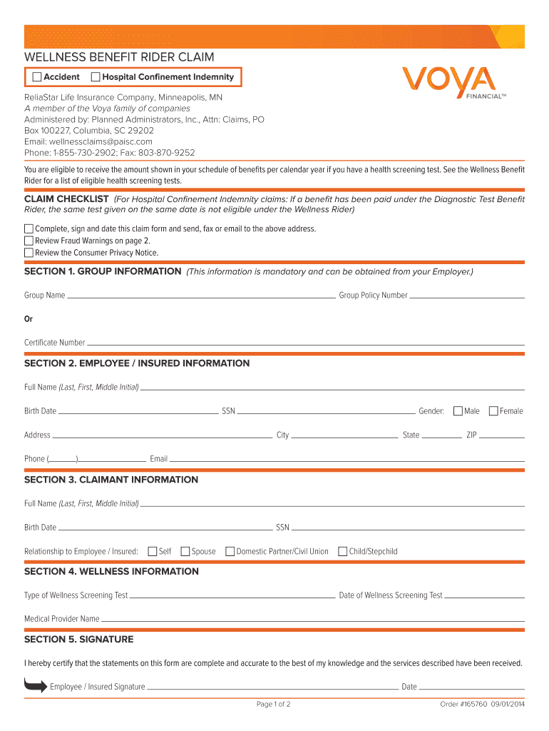 RESET FORM WELLNESS BENEFIT RIDER CLAIM F Accident F Hospital Confinement Indemnity Register Life Insurance Company, Minneapolis, MN A member of the Goya family of companies Administered by: Planned