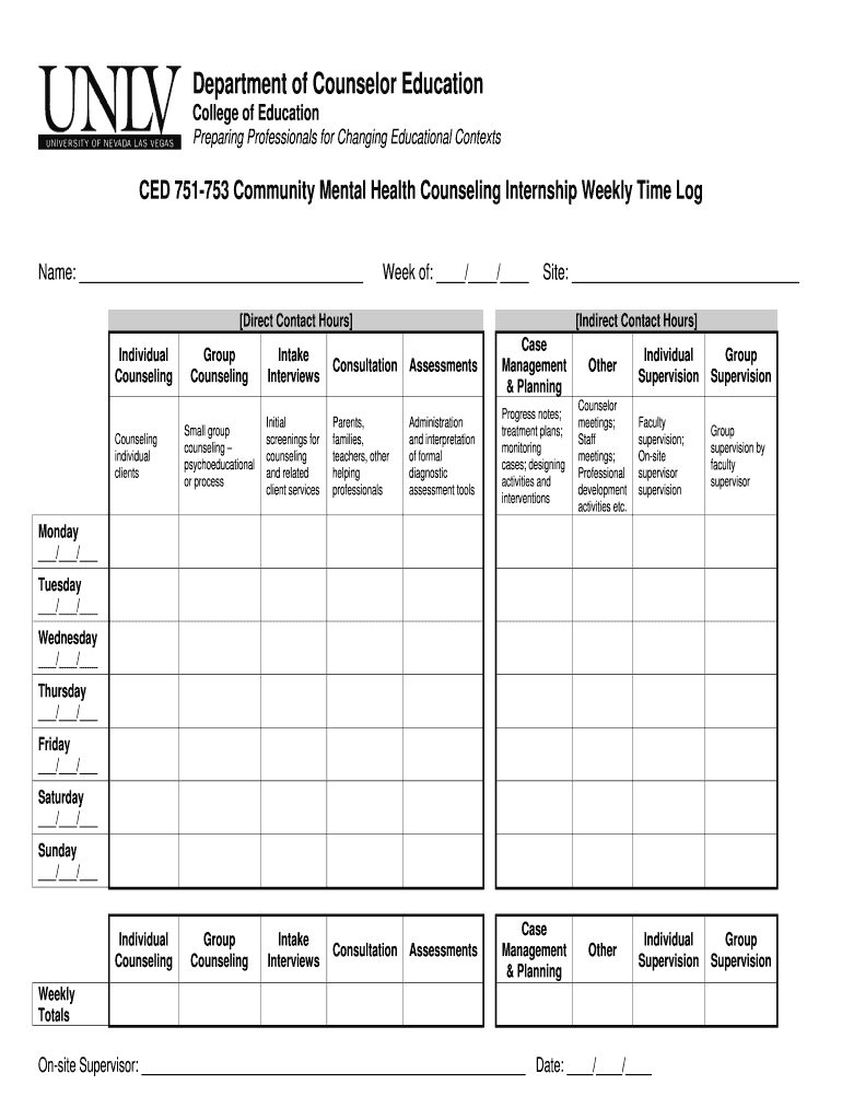 Get the free CED 751-753 Community Mental Health Counseling Internship - education unlv