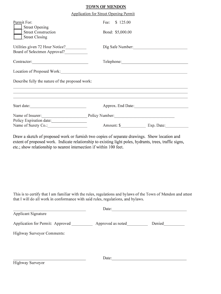 Submit supporting documents: Along with the application form, you may be required to submit additional supporting documents. This could include site plans, traffic management plans, proof of insurance, and any other relevant documentation requested by the municipality or transportation department.