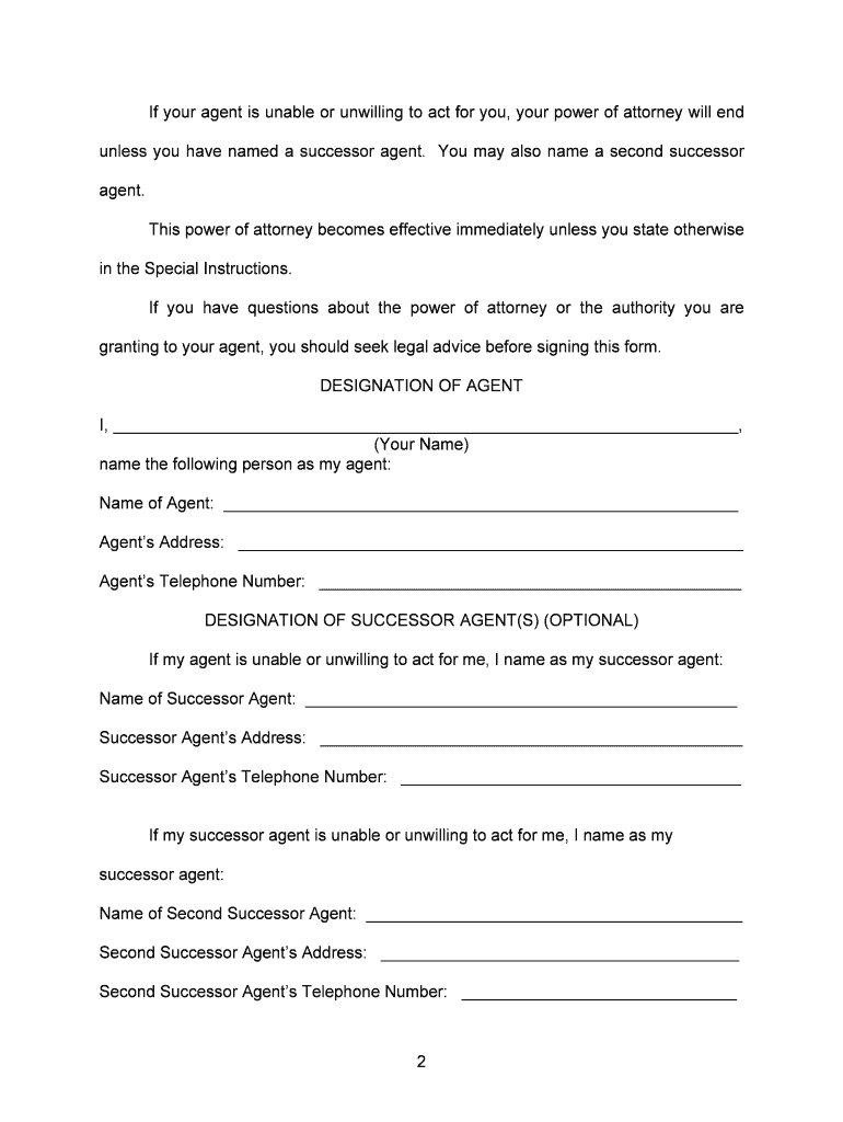 If there are any specific limitations or restrictions to the powers granted, clearly state them in the corresponding section of the form.