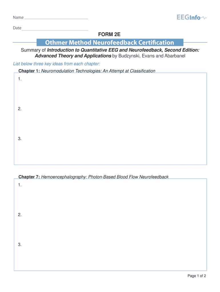 Get the free Name Date FORM 2E Othmer Method Neurofeedback Certication Summary of Introduction to...