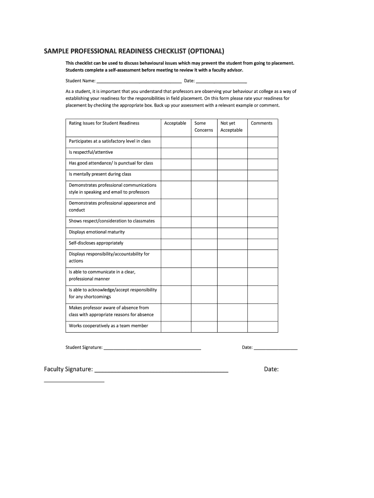 How to fill out sample professional readiness checklist