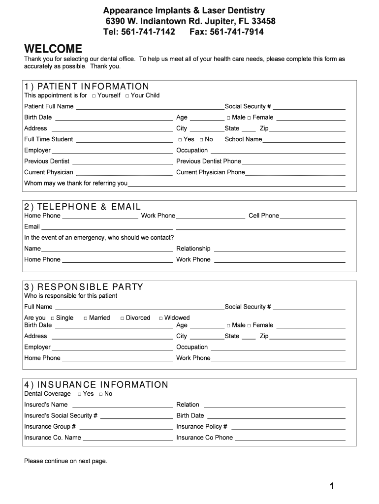 Get the free Patient bFormsb - Appearance Implants amp Laser Dentistry