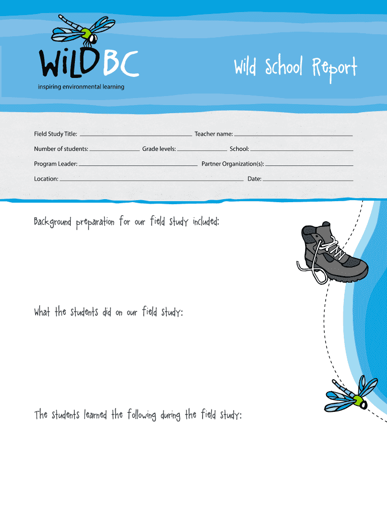 Wild School Report inspiring environmental learning Field Study Title: Number of students: Teacher name: Grade levels: Program Leader: School: Partner Organization(s): Location: Date: Background preparation