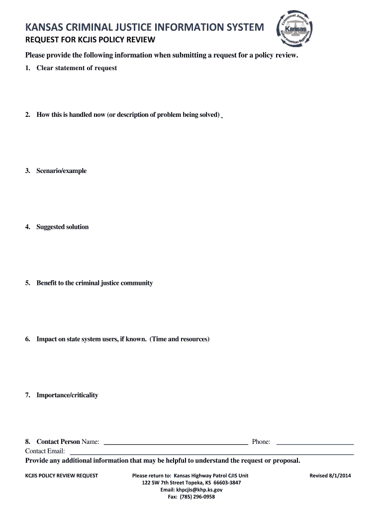 Get the free KANSAS CRIMINAL JUSTICE INFORMATION SYSTEM