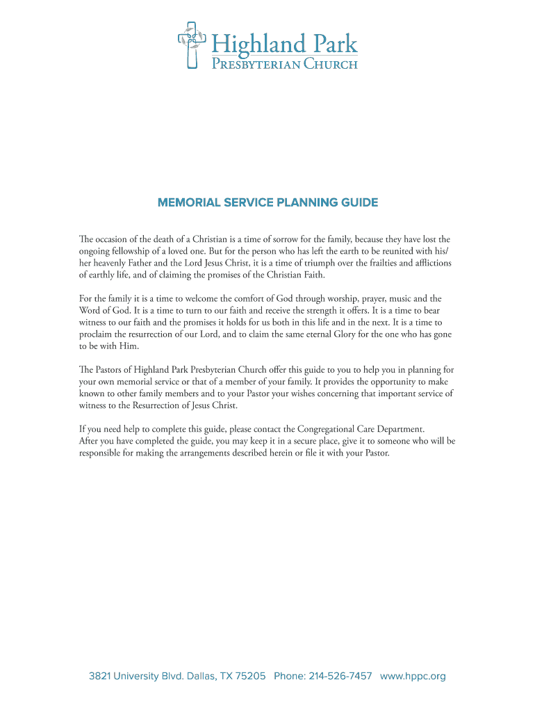 Get the free MEMORIAL SERVICE PLANNING GUIDE - hppc