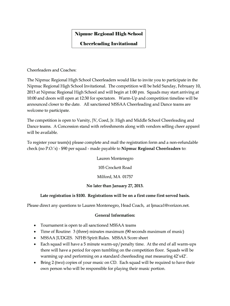 Get the free Nipmuc Regional High School Cheerleading Invitational